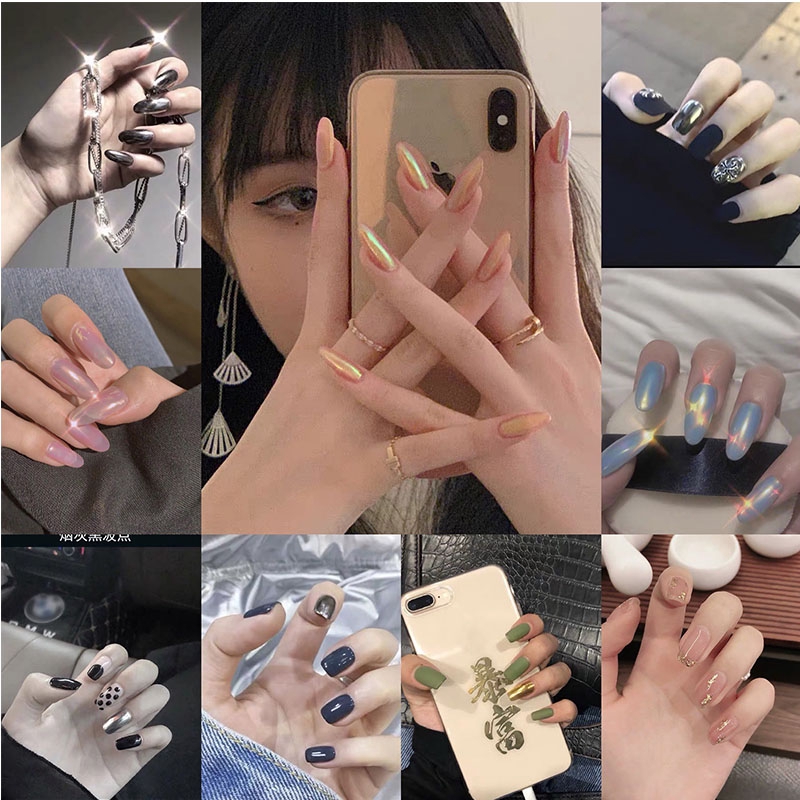 Autumn Nail Art Fake Nails Aurora Mermaid Multicolor Nail Stock Removable Shopee Malaysia