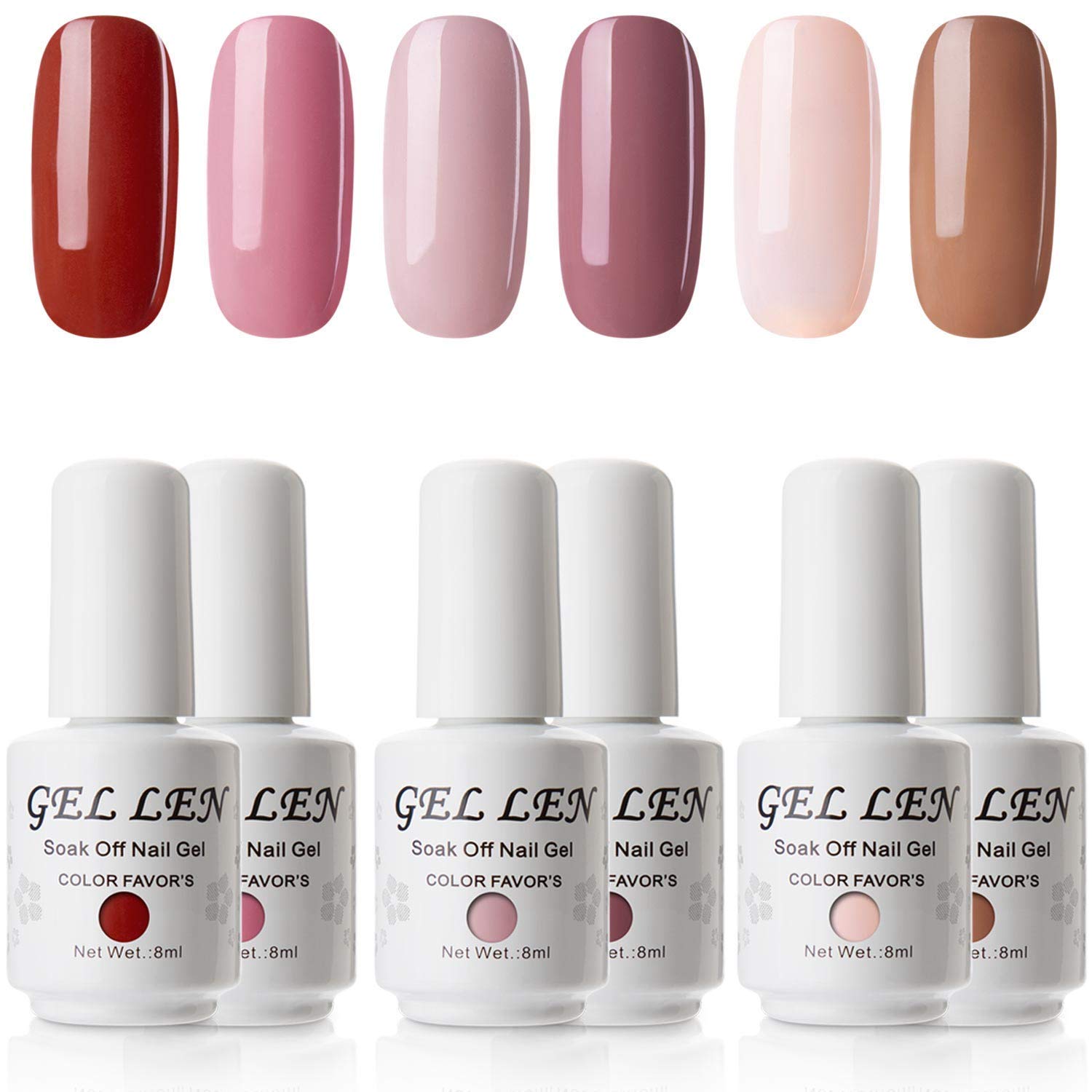 Amazon Com Gellen Gel Nail Polish Set Pink Nudes 6 Colors Popular Nail Art Colors Uv Led Soak Off Autumn Nail Gel Kit Beauty