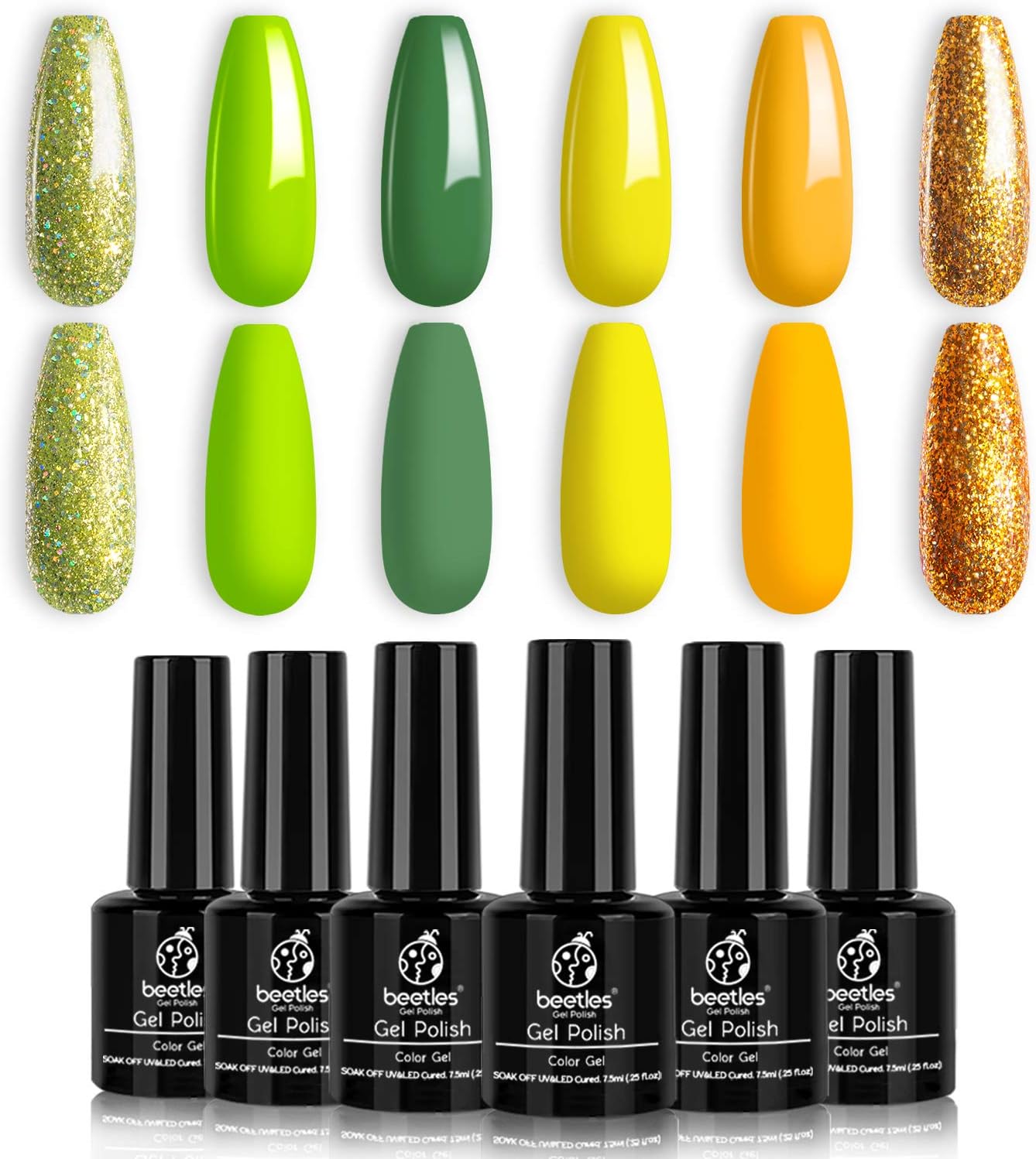 Amazon Com Beetles Gel Nail Polish Kit 6 Colors Gel Polish Set Fall Autumn Nail Gel Polish Gold Yellow Glitter Soak Off Led Nail Lamp Cured Base And Top Coat Needed For