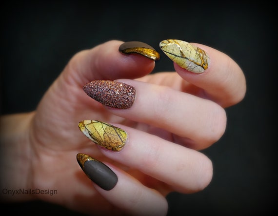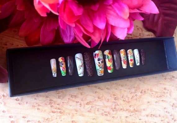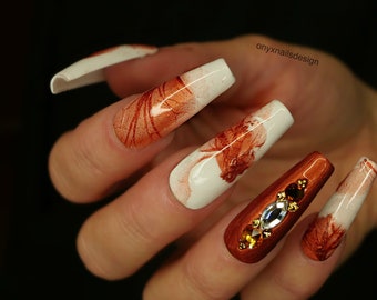 Autumn Fall Theme Fall Colors Leaves Fall Designs Glitter X Confetti Press On Nails False Nails Fake Nails Nail Designs Winter Nail Designs Fake Nails