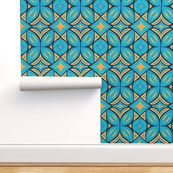 Removable Water Activated Wallpaper Pink Eclectic Boho Mid Century Contemporary 32 60 Picclick Uk