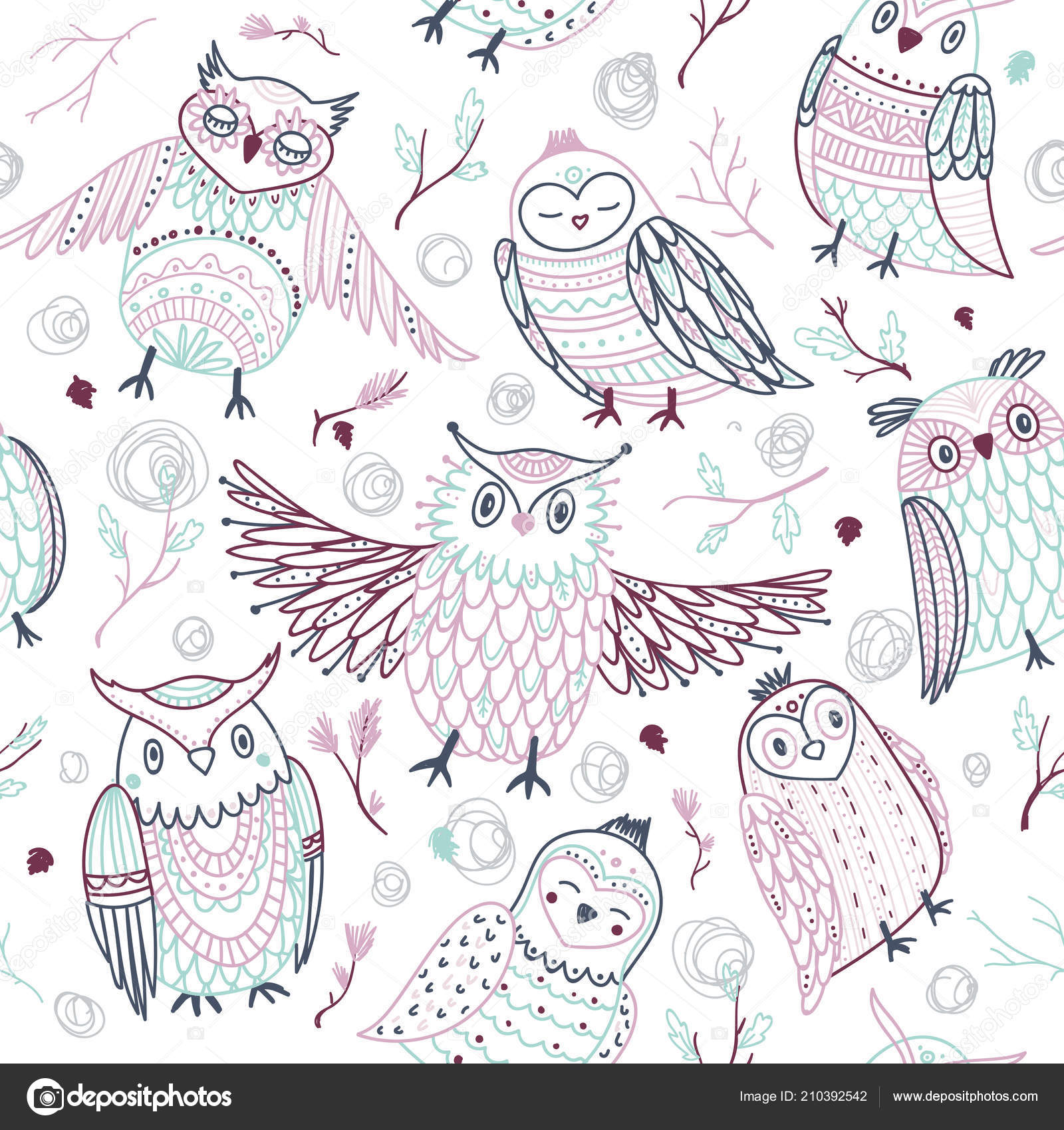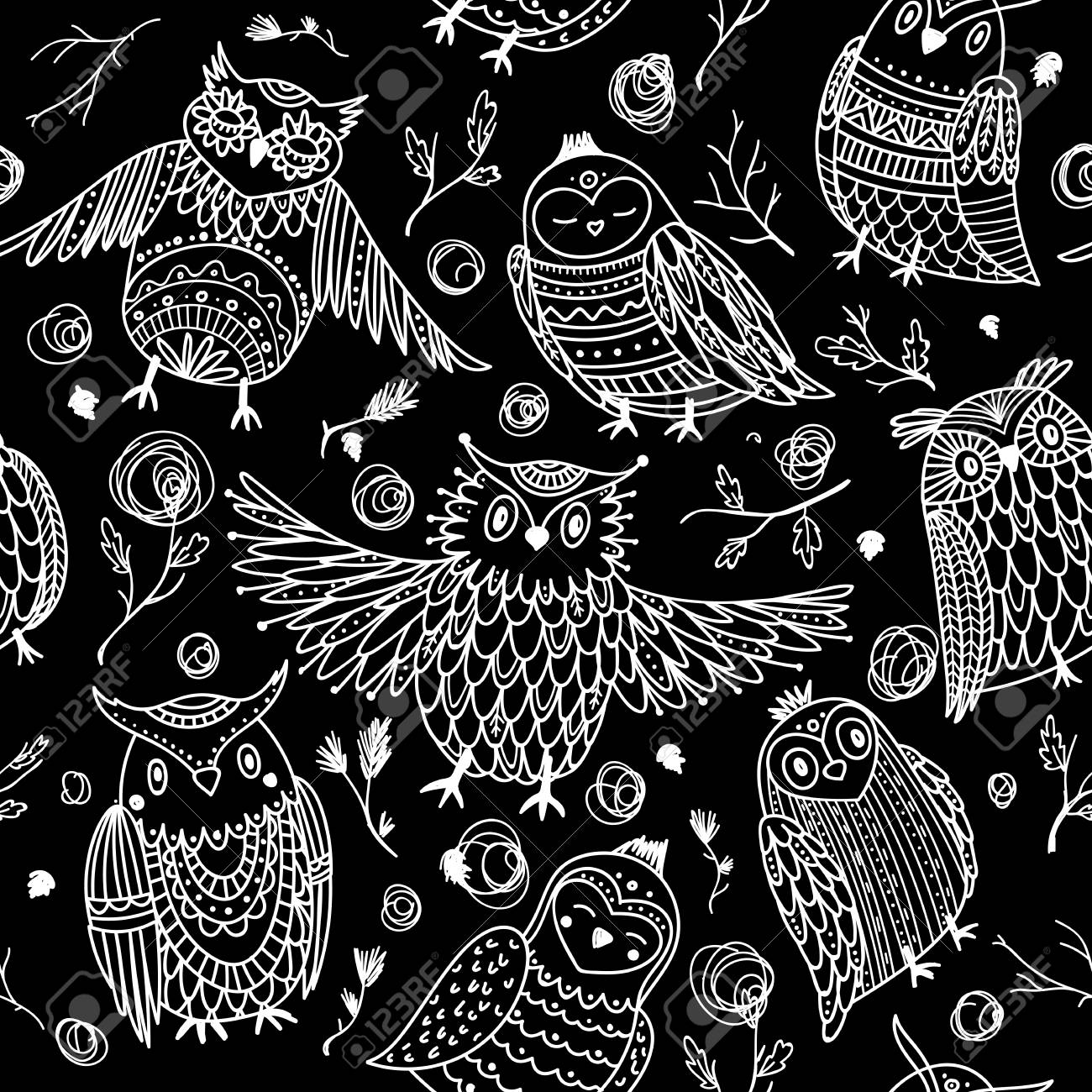 Cute Owls Seamless Pattern In Boho Style With Ornaments Stock Vector Illustration Of Bird Doodle 133834242