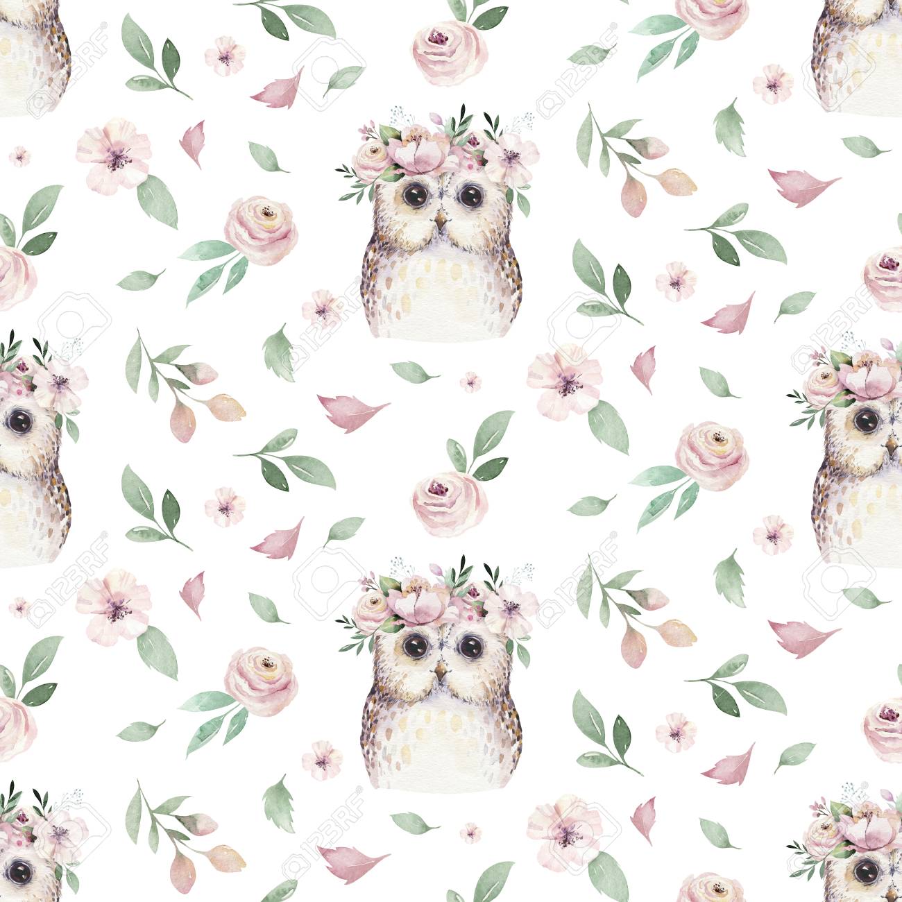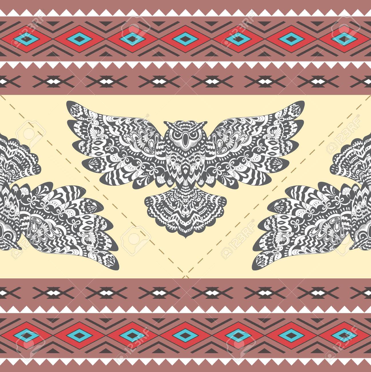 Cute Owls Seamless Pattern In Boho Style With Ornaments Can Royalty Free Cliparts Vectors And Stock Illustration Image 109738003