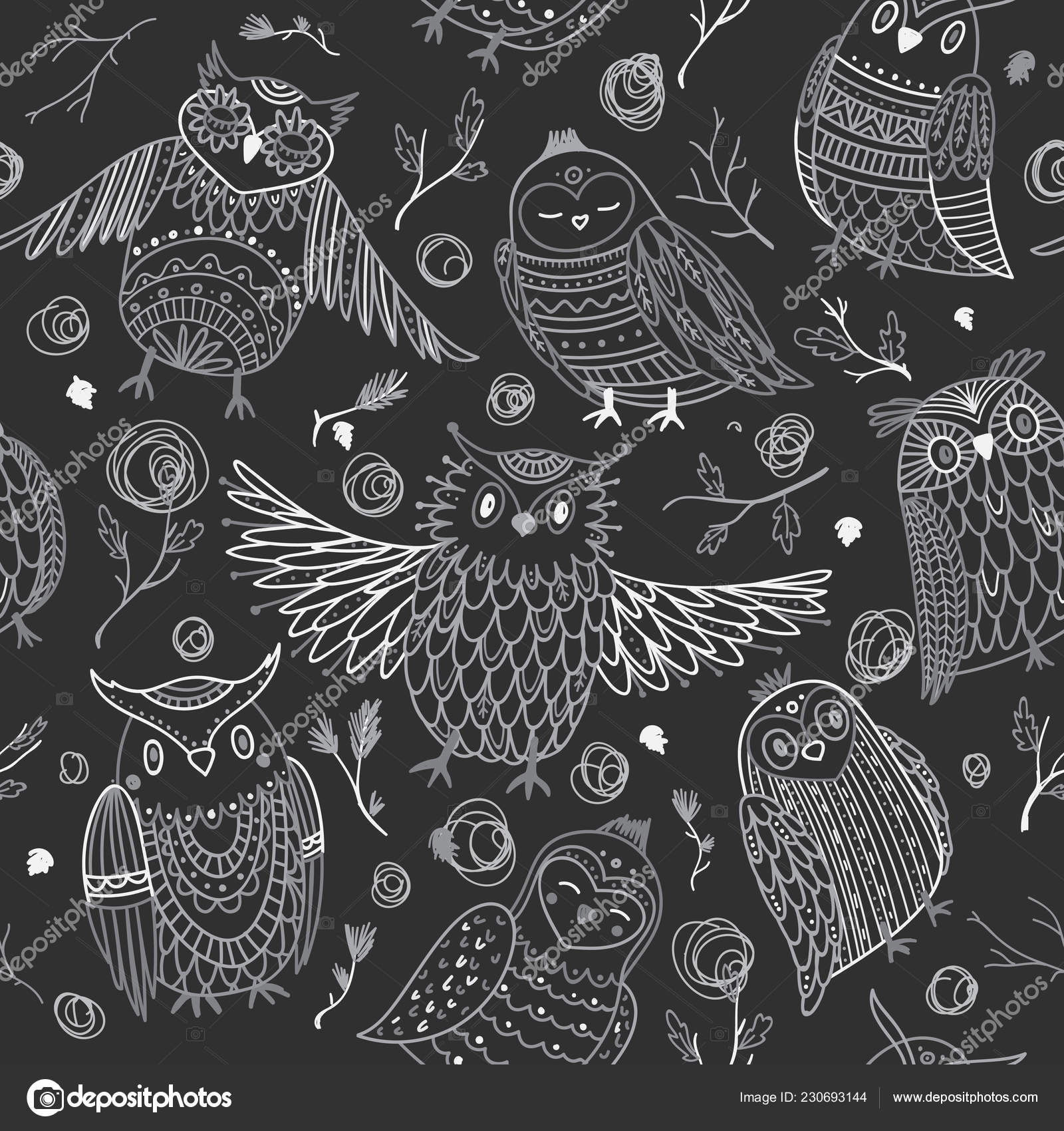 Cute Owls Seamless Pattern Boho Style Ornaments Can Printed Used Stock Vector C Samiola 230693144