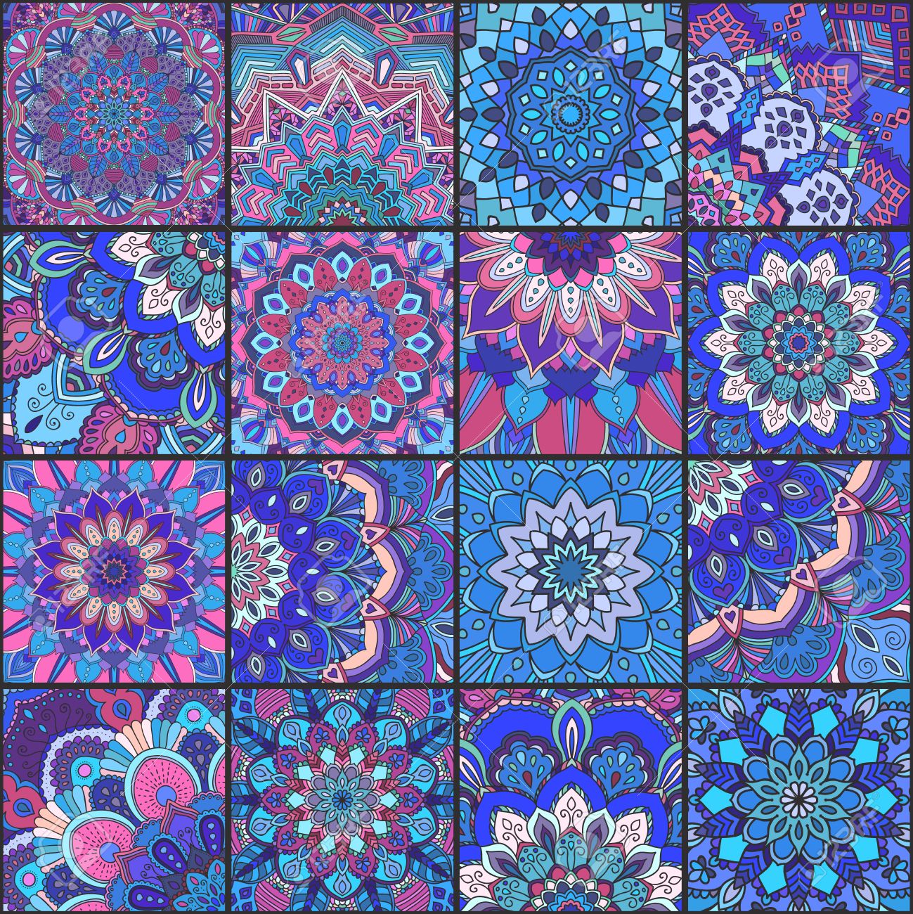 Boho Tile Set And Seamless Pattern Blue Pink Patchwork Fabric Royalty Free Cliparts Vectors And Stock Illustration Image 60390221