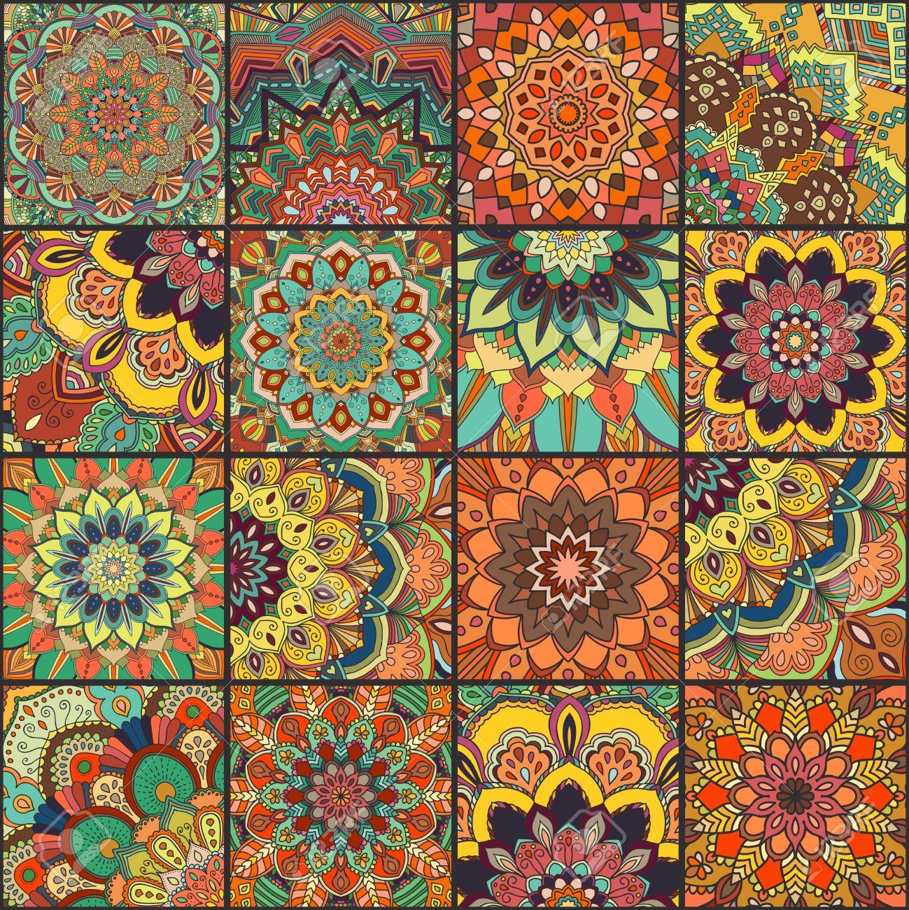 Patch Boho Flower Seamless Pattern Mandala Patchwork Oriental Design Wallpaper Furniture Textile Fabric Print Tile Deco Clipart K53128752 Fotosearch
