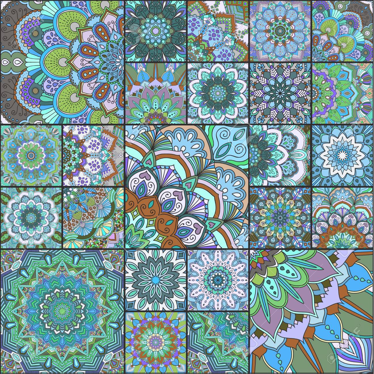 Boho Tile Set Turquoise Patchwork For Fabric Print Furniture Royalty Free Cliparts Vectors And Stock Illustration Image 60390226