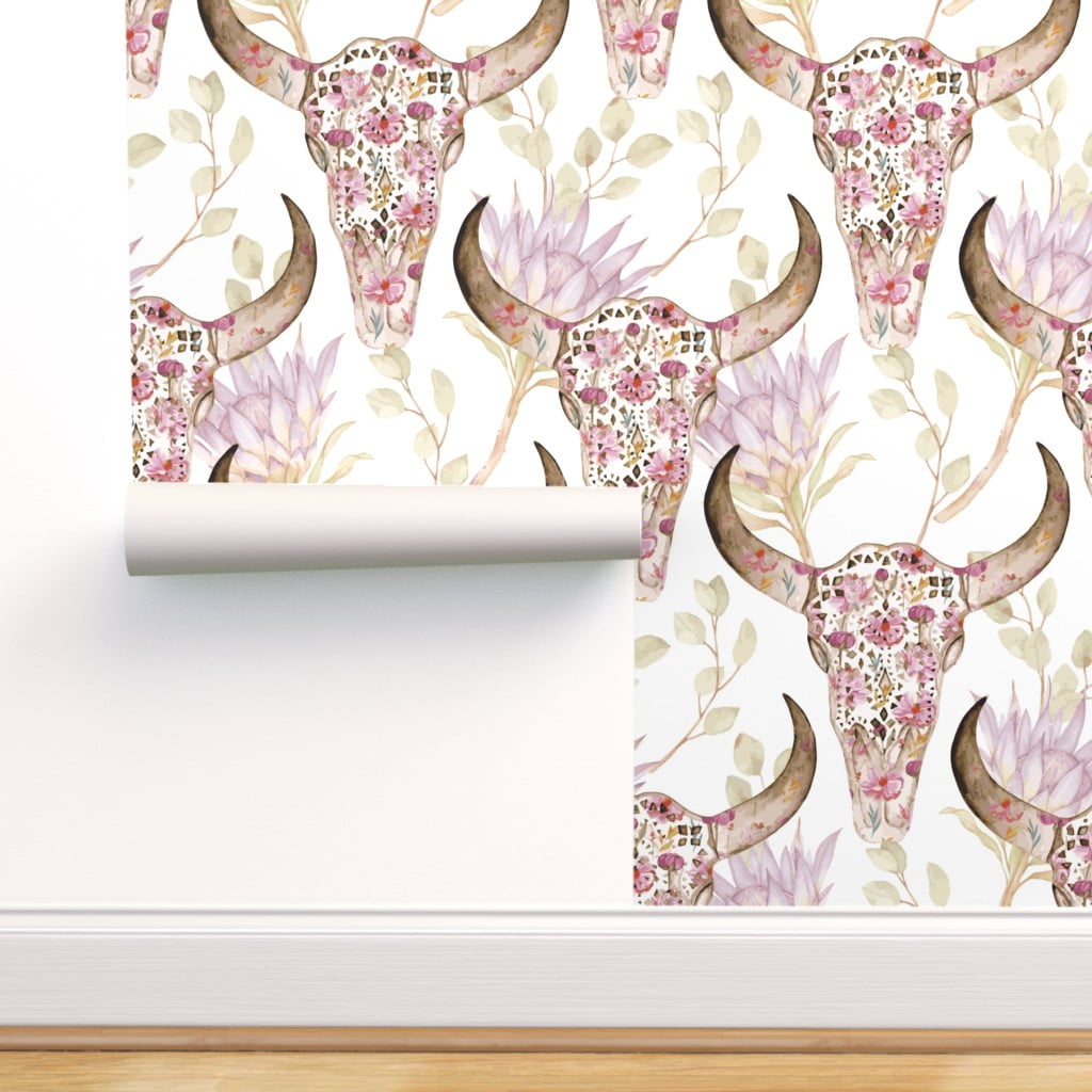 Peel And Stick Removable Wallpaper Santa Fe Floral Skull Boho Desert Watercolor Walmart Com Walmart Com